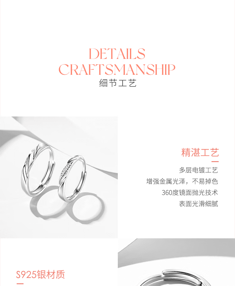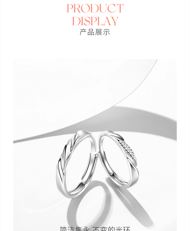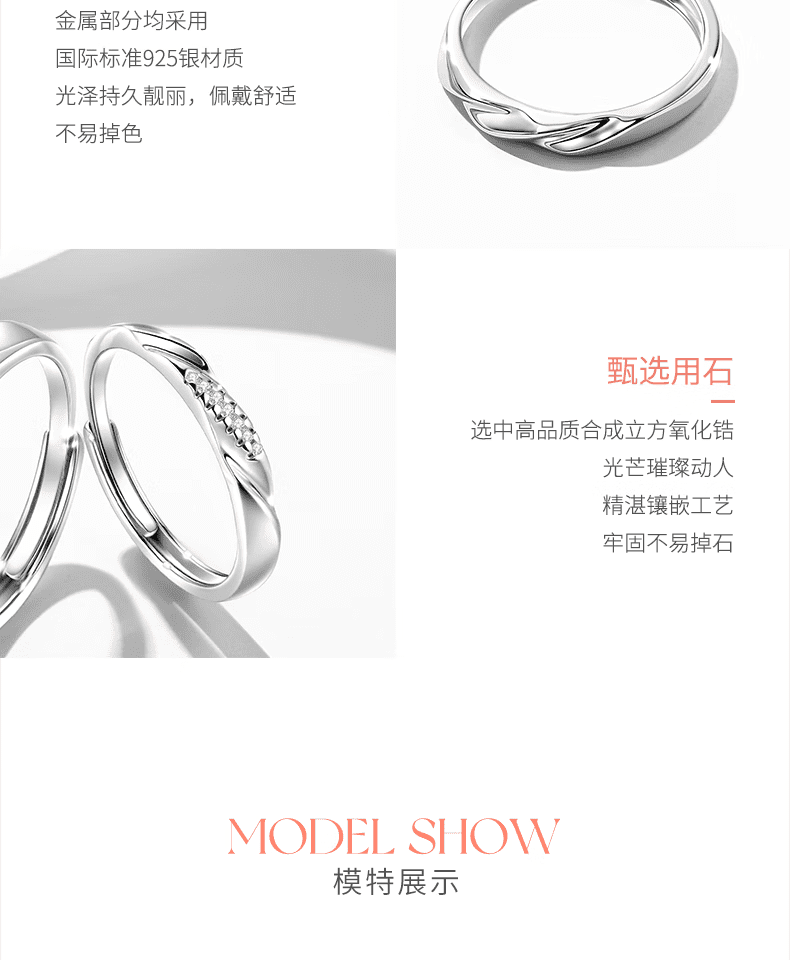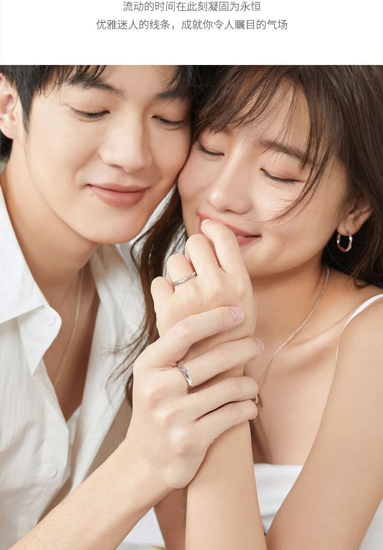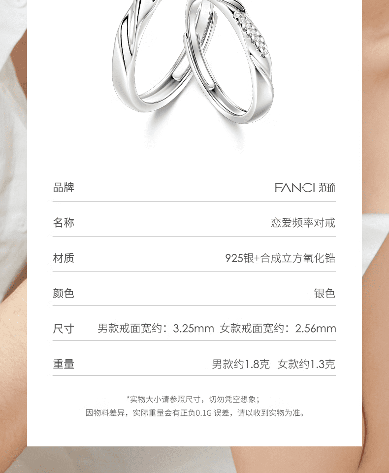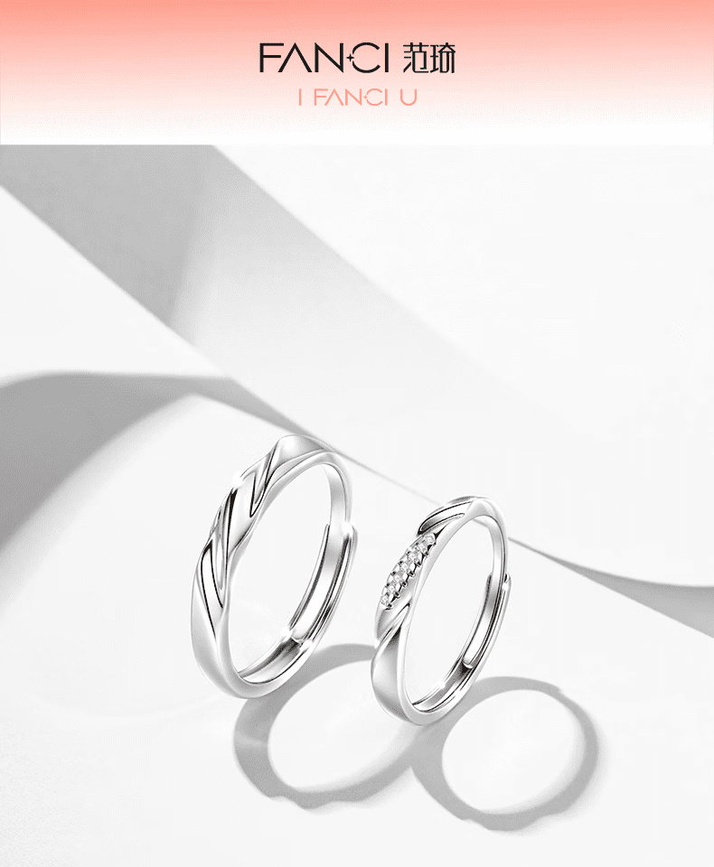 Fanci范琦 恋爱频率925银情侣戒指一对开口对戒订婚求婚520情人节礼物